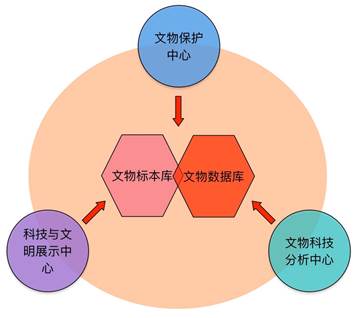 (2) “三中心”包括:“文物保护中心”、“文物科技分析中心”和“科技与文明展示中心”,是中华文明文物基因库的辅助支撑部分。